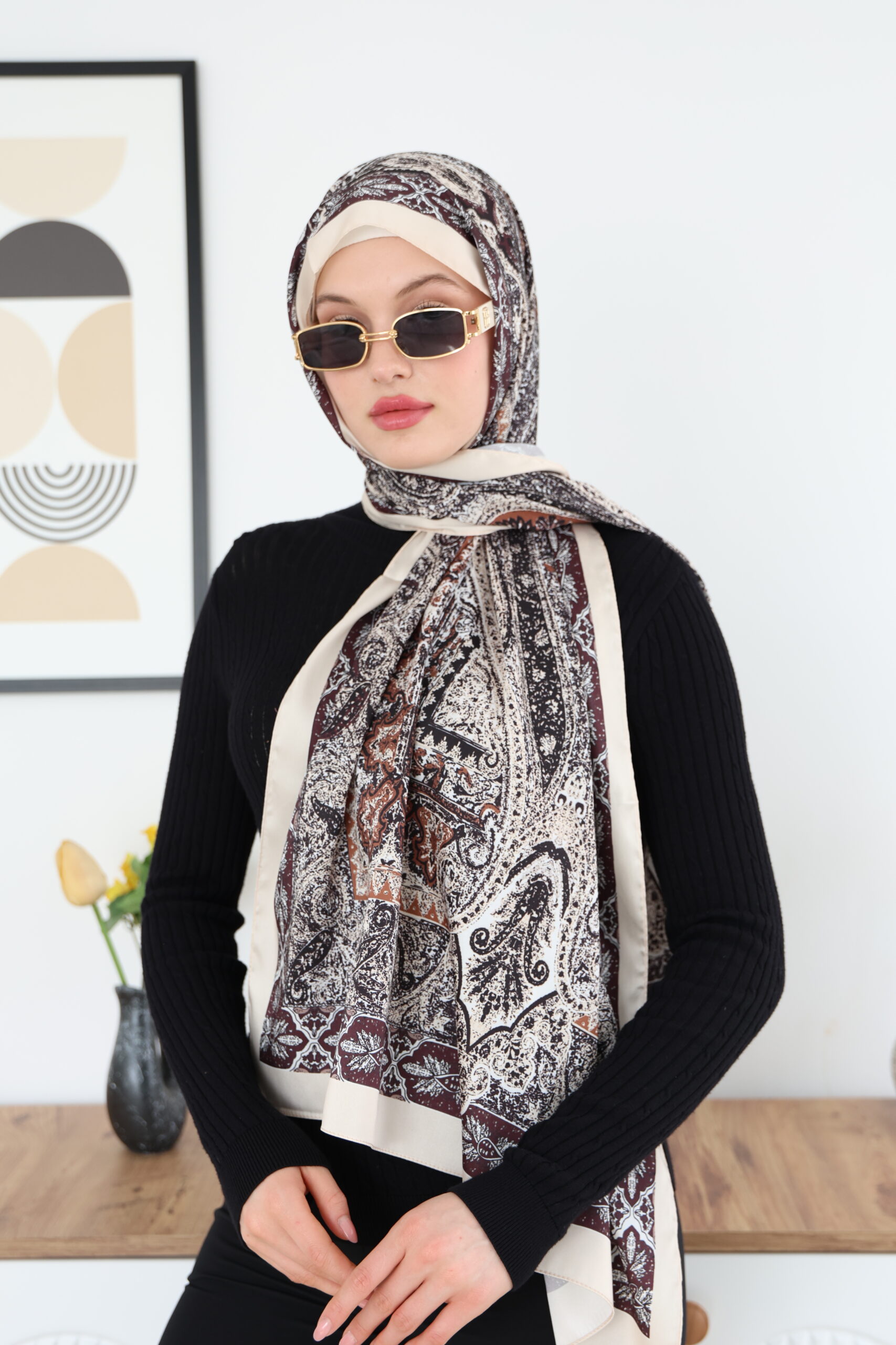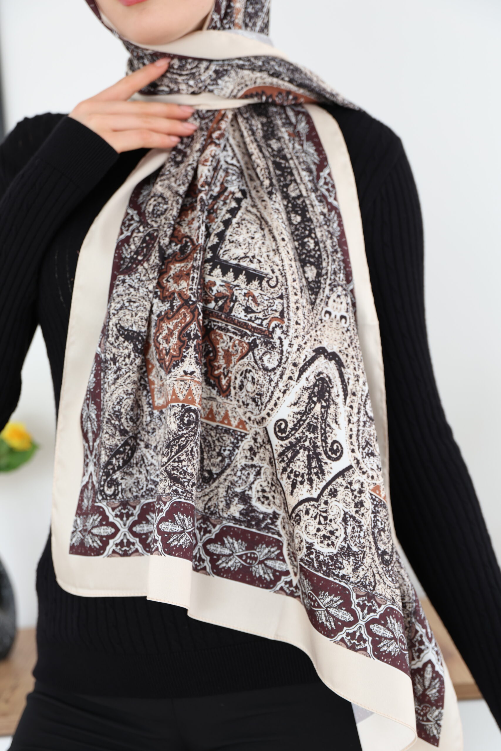 • Şıklık ve konforu bir arada sunan Etnik Desen Saten İşlemeli Kumaş Şal, zarif dokusu ve göz alıcı tasarımıyla stilinize benzersiz bir dokunuş katıyor.